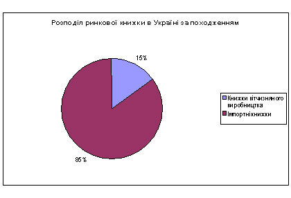 Недостатній рівень виробництва вітчизняних книжок компенсується за рахунок імпорту. За висновками Українського центру культурних досліджень Міністерства культури і туризму в Україні, (http://www.culturalstudies.in.ua/2007_analiz_5_1.php) українську видавничу індустрію можна розглядати лише як додаток до книжкового імпорту, який домінує на ринку.