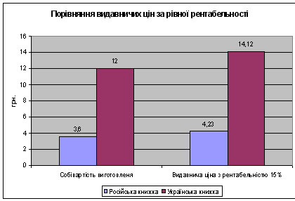 Аналіз таблиці порівняння собівартості показує, що за умови однакових видавничих цін рентабельність російської книжки уп’ятеро вища ніж української через те, що російські книжки видаються вдесятеро більшим накладом.